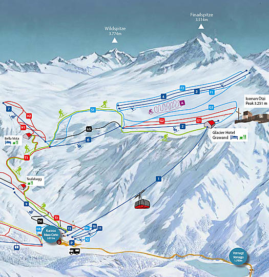 Einstieg: Kurzras, bei Talstation Sessellift Roter Kofel